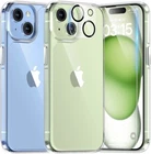 TAURI for iPhone 15 Case, [5 in 1] 1X Clear Case [Not-Yellowing] with 2X Screen Protector + 2X Camera Lens Protector, [15 FT Military Grade Drop Protection] Shockproof Slim Phone Case for 15