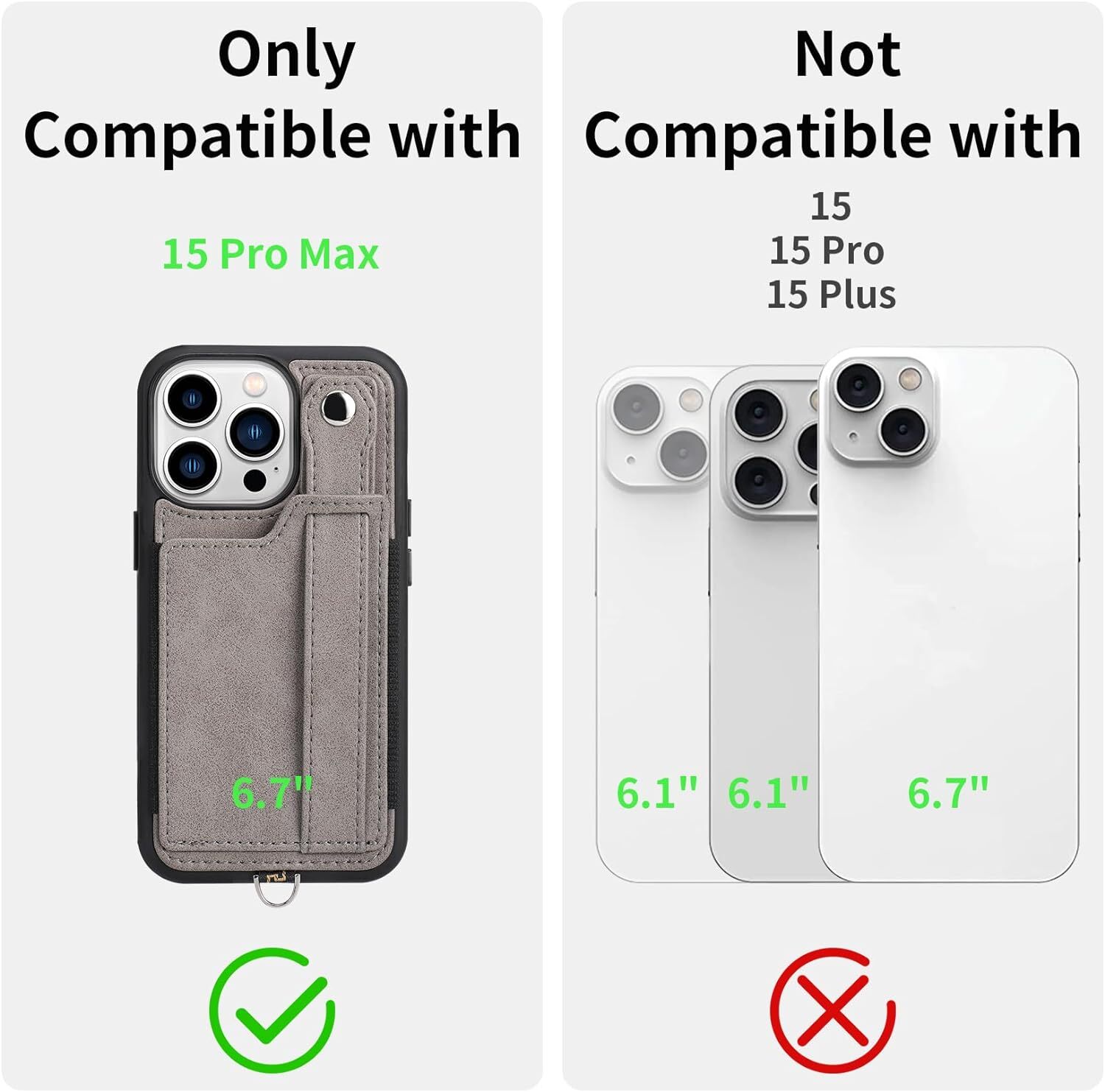 Phone Case Compatible with iPhone 15 Pro Max Lanyard Case for iPhone 15 Pro Max Compatibility: This Wallet Case for iPhone 15 Pro Max Case is only compatible with iPhone 15 Pro Max 6.7-inch, released in 2023. [ NOT for 15 6.1”, for 15 Plus 6.7”, and 15 Pro 6.1 ] Convenient Phone Kickstand: As a phone grip or kickstand when buckle the second button. Phone grip is easy to hold and keep your phone safe. wallet case for iPhone 15 Pro Max case with lanyard can also act as kickstand functions that is convenient for reading, watching videos, browsing the web, and face-to-face chatting with friends anytime or anywhere. Functional Wallet Card Holder Design: Wallet Case for iPhone 15 Pro Max Case lanyard with card holder offers space for credit cards, ID cards, and some cash, making it quickly go out with taking a purse,button design protects your belongings securely and prevents important things from being lost. Hands-Free Phone Strap:This wallet case for iPhone 15 Pro Max comes with a lanyard strap, both of which are adjustable in length and detachable.The wallet Case for iPhone 15 Pro Max straps keeps your phone with you and frees your hands at the same time. It is perfect for traveling, simply going out or usual daily life. Durable Material :Premium TPU leather phone case for iPhone 15 Pro Max with lanyard makes it soft to touch and looks luxurious,easy access to all ports, buttons & cameras without opening the phone case.This helps to ensure resistance from scratches, shatters and fingerprints, as well as preventing any loss of screen or camera quality. ------------------------------------------------------------------------------------------ Shipping Policy: Domestic lower 48 states shipping is free and expedited. Shipping is also free to the rest US states and US Protectorates including Puerto Rico, Alaska, Hawaii, APO/FPO, but delivery times are longer than usual. If you need your order by a specific date please contact us before you make the purchase for a delivery estimate. ------------------------------------------------------------------------------------------ Return Policy: Your satisfaction is guaranteed! If for any reason you are unhappy with your item, just return it within 30 days for a full refund. Please contact us prior to initiating a return so that we can issue you a refund authorization.