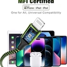 Fast charging & High-Speed Data Transfer: The iPhone charger cord provides up to 5V/2.4A safe charging current guaranteed to charge your devices faster than an original iPhone charger cable and transfer movies, music, or an entire photo library in seconds with 480Mbps transfer speeds. Durable USB A to Lightning Cable: Double-braided Nylon cable With a 40,000-bend lifespan, and polished aluminum alloy case with a 20000+ plugging lifespan, which has good flexibility and one of the toughest cables ever created. Apple MFI Certified & Flawless Compatibility: The Lightning cable built with original chip certified by MFI and original 8 PIN connector with flawless compatibility with all Lightning devices, including iPhone, iPad, and more. Universal Compatibility:Compatible with iPhone 14/iPhone 14pro/iPhone 14pro max/iphone 13/13 Pro/iphone13 Pro Max/iPhone 12 mini /12 / 12 Pro / 12 Pro Max / 11 / 11 Pro / 11 Pro Max / XS / XS Max / XR / X / 8 / 8 Plus /iPhone SE(2nd generation) /iPad 8 / iPad mini 5/AirPods Pro / AirPods Max What You Get: 3 pack 6FT (Green/Golden/White) Premium Nylon Lightning iPhone Charger Cable,
