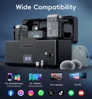 Microphone for iPhone with Charging Case Mini Microphone Wireless Microphones Lavalier Microphone USB C Lapel Mic Clip on Mic for iPhone, iPad, Android for Video Recording, Vlog, YouTube, TikTok 54 Hours Long Battery Life: The transmitter for lapel microphone wireless can last up to 9 hours. If one lapel mic battery runs out, you can use another fully charged mini microphone,2 times wireless charging for 2 Mics via charging case 164FT Long Range Wireless Audio Transmission:the upgraded lavalier microphone ensures stable wireless transmission up to 164 feet (50 meters), delivering clear,crisp and steady audio in open environments with no obstructions or interference with constant improvements Reduce Background Noise By up to 99%:Clear,crisp,studio quality sound without distortion thanks to the built-in upgraded professional-grade noise reduction chip 4 Audio Modes: The wireless mic comes with 4 smart modes for various recording requirements:Noise Cancellation for Video Recording,Reverb Mode for LiveStreaming,TikTok,Vlog. Mute Mode for Meeting,Interview,Report.Original Mode for Sing,Eating broadcast Wide Compatibility for Multiple Scenarios with 180-day Quality : The upgraded mic for iphone vlogging is compatible with IOS/Android smartphones, iPads, laptops, PCs,the mic for content creators is suitable for live streaming,outdoor recording,video conference,live interview Plug and Play: The microphone for iphone can pair without any apps or Blueteeth. Just plug the receiver into devices and power on the mini microphone, and wireless microphones will automatically connect successfully. The built-in professional-grade noise reduction chip enables lavalier microphone effectively captures sound from all directions, reducing surrounding noise significantly Wireless Lavalier Microphone Package: The lavalier microphone for iphone comes with 1 Charging case, 2 Lavalier Microphones,1 Type-C Receiver,1 Lightning Adapter,1 C-A Adapter, 2 windproof covers , 2 magnetic clips for the mini mic, a storage bag, and a Type C charging cable, ensuring high quality audio anywhere Wireless Microphones Package: The lavalier microphone for iphone comes with 1 Charging case, 2 Lavalier Microphones,1 Type-C Receiver,1 Lightning Adapter,1 C-A Adapter, 2 windproof covers , 2 magnetic clips for the mini mic, a storage bag, and a Type C charging cable, ensuring high quality audio anywhere Shipping We offer FREE shipping on all orders! We ship within Three business days of payment, usually sooner. We use a selection of shipping services such as UPS, FedEx, USPS etc. We only ship to the lower 48 states, no APO/FPO addresses or PO Boxes allowed. Local pickups and combined shipping options are not provided at this time. Return You can return a product for up to 30 days from the date you purchased it. Any product you return must be in the same condition you received it and in the original packaging. Please keep the receipt. Payment We accept payment by any of the following methods: PayPal Please pay as soon as possible after winning an auction, as that will allow us to post your item to you sooner! Feedback Customer satisfaction is very important to us. If you have any problem with your order, please contact us and we will do our best to make you satisfied. Contact Us If you have any queries, please contact us via ebay. We usually respond within 24 hours on weekdays. Please visit our eBay store to check out other items for sale! Thank you for shopping at our store.