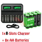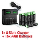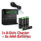 Pls Check photo & read the whole listing . if you Order 8x 1100mAh AAA Batteries , You will Get 8x 1100mAh AAA battery Only . Charger is Not comes with it. About Fufly Rechargeable Batteries High Capacity: 1.2V AAA 1100mAh / AA 2800mAh Ni-MH rechargeable AA AAA batteries. Long Lasting Life: Fufly AA / AAA batteries can be recharged over 1200 times, Ni-MH batteries offer an eco-friendly option without Hg/Cd/Pb. Storage Case: Durable plastic storage cases can keep your batteries organized and protected. You can attach the stickers on the boxes to help you identify the battery conditions, each case with four batteries. Wide Application: AA / AAA batteries are widely used in household devices like digital cameras, toys, remote controls, hand held games, flashlights, alarm-clock, wireless mouse and keyboards etc. Service: Fufly offers 12 months repair and replace service, any problems please feel free to contact us via email. Battery Specifications: For AA 2800mAh Battery ( Green Color As shown ) Size: AA Voltage: 1.2V Capacity: 2800mAh Battery Type: Ni-MH For AAA 1100mAh Battery ( Black Color As shown ) Size: AAA Voltage: 1.2V Capacity: 1100mAh Battery Type: Ni-MH Recycle: 1200 times Battery Charger 4 /8 Slots Specifications: For the 4solt charger (White one) Built-in US plug 1. Input:AC 100-120V AC 2. Output: 4 slots 1x AA 1.2VDC 2000mA, 1x AAA 1.2VDC 1000mA; 2x AA 1.2VDC 1000mA, 2x AAA 1.2VDC 500mA; 3x AA 1.2VDC 500mA, 3x AAA 1.2VDC 250mA; 4x AA 1.2VDC 500mA, 4x AAA 1.2VDC 250mA; 3. Using environment temperature: 0℃ to 40℃, Humidity ≦ 80% 4. Storage environment temperature: -10℃ to 40℃, Humidity ≦ 60% For LCD 8Solt Charger (Black One) Charger only comes with usb charging end. 1. Input: 100-240V AC, 50/60Hz 10W, 12V DC 800mA 2. Output: AA/AAA/C/D 1.2V DCx4 1000mA, 6F22 9V DC 30mA 3. No Load Power Consumtion: 0.5W Max 4. Full Load power consumtion: 10W Max 5. Battery Chrge Rate: >96% 6. Size: 195mm x 93mm x 53mm 7. Weight: 320 g 8.What's inside: 1x EBL Universal LCD Smart Battery Charger 1x Charge Cable 1x User Manual Battery Type (Ni-MH) Capacity Charging time (approx.) AAA 500-1200mAh 1 - 3 hours AA 1300-2800mAh 1 - 3 hours C 1800-5000mAh 1 - 5 hours D 1800-10000mAh 1 - 8 hours 9V 150-600mAh 5-20 hours Compatible with: AA/AAA/C/D Ni-MH/Ni-Cd rechargeable battery Package Include: As your choice