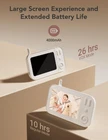 No WiFi, Hacker-Free,Stable Signal: The Nooie Baby Monitor offers effortless connectivity without the need for Wi-Fi or an app. With no risk of hacking, enjoy a worry-free and secure monitoring experience for you and your little one. And strong antenna signal penetration ensures that the camera and display are plug-and-play, providing you with a stable live feed Ultra-Long Battery Life: Bid farewell to midday power struggles with our extra-long battery life. Boasting a powerful 4000 mAh capacity, which keeps going strong, so you never have to worry about sudden shutdowns in the middle of the day or night Crisp 720P Picture Quality: Immerse yourself in stunning clarity with our spacious 5-inch screen and 720P HD resolution. With four times zoom capability, you'll never miss a precious moment, whether it's your baby's first smile or playful antics Soothing Lullabies and 2-Way Talk: Create a serene environment for your little one with our selection of soothing lullabies. And with two-way talk, you can comfort and communicate with your baby from anywhere in the house, ensuring they feel your presence even when you're apart Temperature Monitoring & Feeding Reminders: Stay attuned to your baby's needs with our cry alarm feature, alerting you instantly to any signs of distress. Plus, monitor your baby's comfort with temperature detection and receive timely feeding reminders, ensuring they're always happy and content