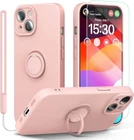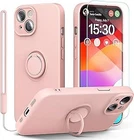 pcgaga Silicone Phone Case for iPhone 15 Plus with Screen Protector [Ring Holder Stand] [Wrist Strap] [Microfiber Lining] Slim Shockproof Protective Cover| 6.7 Inch (Pink)