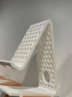 This phone stand with charging space is the perfect accessory for your cell phone. It comes in a sleek white color and is designed with a flexible feature that allows you to easily view your phone from any angle. The stand is perfect for those who want to keep their phone charged and organized while on the go.The charging stand is compatible with all cell phone brands and has a spacious charging space that allows for easy charging of your device. Its compact design makes it easy to carry around and use wherever you go. Get this phone stand with charging space today and keep your phone charged and organized all day long! This is a 3D printed product, and if you want it in a different color then white message me before I ship.