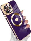 tharlet Magnetic for iPhone 14 Pro Max Case [Compatible with Magsafe] Cute Love Luxury Plating Edge Bumper Case with Full Camera Lens Case for iPhone 14 Pro Max Phone Case| Purple(6.7")