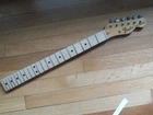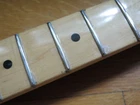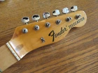 from Retro Guitar Parts vintage guitars + parts. "Archtop and Jazz Specialist" click on "see other items" to check out our many new and vintage USA guitar parts! vintage 1971 fender maple neck + tuners for telecaster This is a 1971 Fender tele neck in really nice clean condition. It has a fresh refret with jumbo frets. It is a nice job....the frets are level and the neck is straight...guaranteed to play really nice! Original tuners in great shape! (Of course with any newly assembled project, you may have to do a light fret level for optimal playing action. ) I am getting a depth of .904 inch at the first fret. .945 at the 12th fret. It is not a baseball bat depth, but also might be described as just a hair thicker than medium profile. I think it feels great and I like a pretty standard medium profile. The original clear lacquer is intact throughout and the neck looks amazing. It is straight and truss rod works. No warp or twist. The original lacquer shows a few minor scars here and there from refret work...pretty normal stuff....could be touched up more but it is fine as is. October 1971 stamp on the end of neck heel. New frets are high/wide type with a radius of 7.25. Similar to dunlop 6105 but wider looking. They feel great. See lots of detail pics of fret work. It's a FAB opportunity to get a cool neck to restore a 1971 Telecaster! shipping to usa 45.00