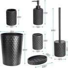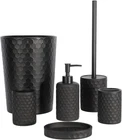 zccz Bathroom Accessory Set, 6 Piece Black Accessories 6pcs Product Details Number of Pieces: 6 Finish Type: Polyresin Manufacturer: zccz Item Weight: 5.1 Pounds Product Dimensions: 7.99 x 7.99 x 10.55 inches Item Weight: 5.1 pounds Item model number: 6pcs Fabric Type: 100% Polyresin Finish types: Polyresin Assembly required: Yes Batteries required: No Material: Resin Color: Black 6pcs Brand: zccz Style: Modern Included Components: Toiletbrush Holder, Dispenser, Trash Can, Toothbrush Holder, Toilet Brush, Soap Dish 100% Polyresin Thick and Sturdy: The trashcan is well made from strong metal, not cheap plastic, and the other items are made from nice resin. As opposed to other plastic items, this bathroom soap dispenser set is nice and heavy, does not break easily, and hold up really well. Bathroom Accessories Set with Trash Can: With a compact garbage can, built from sturdy metal, features matte finish and geometric exterior, matches nicely with your decor; fit well for home, bathroom, office or Dorm. Sturdy Toilet Brush with Holder: The stiff bristle brush deep clean the toilet, with a cover to hide the brush head in the holder, and prevent any splash on your hands. The toilet brush holder is heavy enough to prevent tipping over. Attractive and Functional: Unique geometric exterior and classic matte finish, this bathroom sets accessories bring an elegant touch to your whole bathroom. Well packaged, ensure they arrived safely without damage. Excellent for a House-warming gift, wedding gift, birthday and Mother's Day gift.